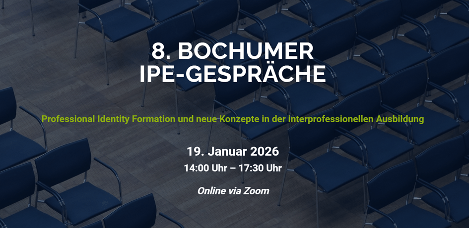 Die 8. Bochumer IPE-Gespräche finden am 19. Januar 2026 (14:00 – 18:00 Uhr, online via Zoom) statt und widmen sich dem Thema «Professional Identity Formation (PIF) und neue Konzepte in der interprofessionellen Ausbildung».